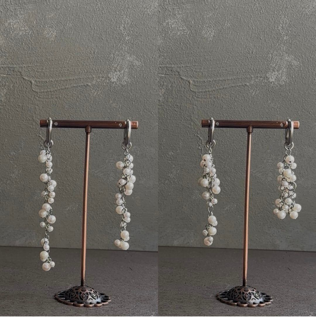 淡水パールのロングピアス 長さが3段階変えられる 金属アレルギー対応