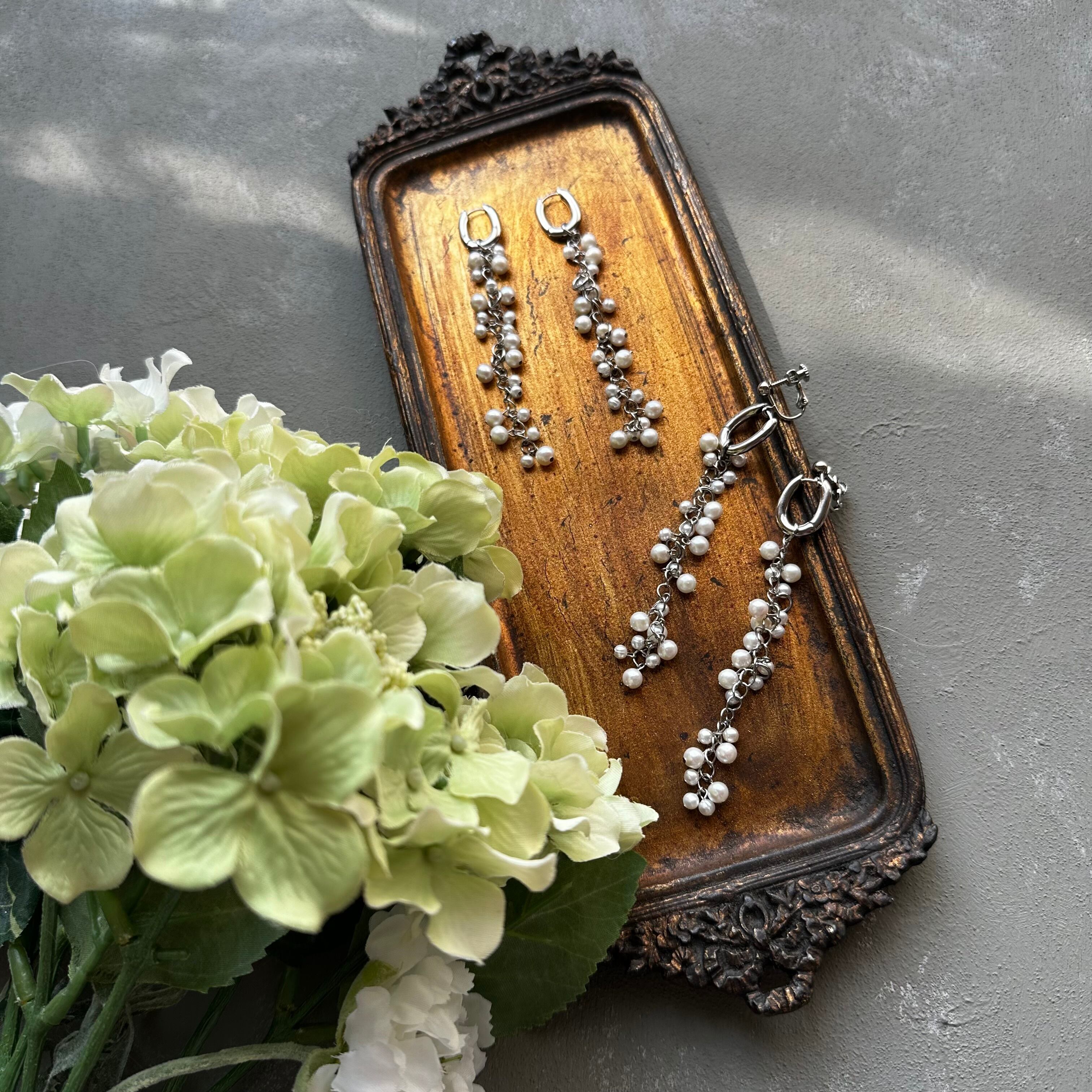 イヤリングはチェーンを取り外してトレンドのシンプルなメタルパーツのみお使いいただくこともできます