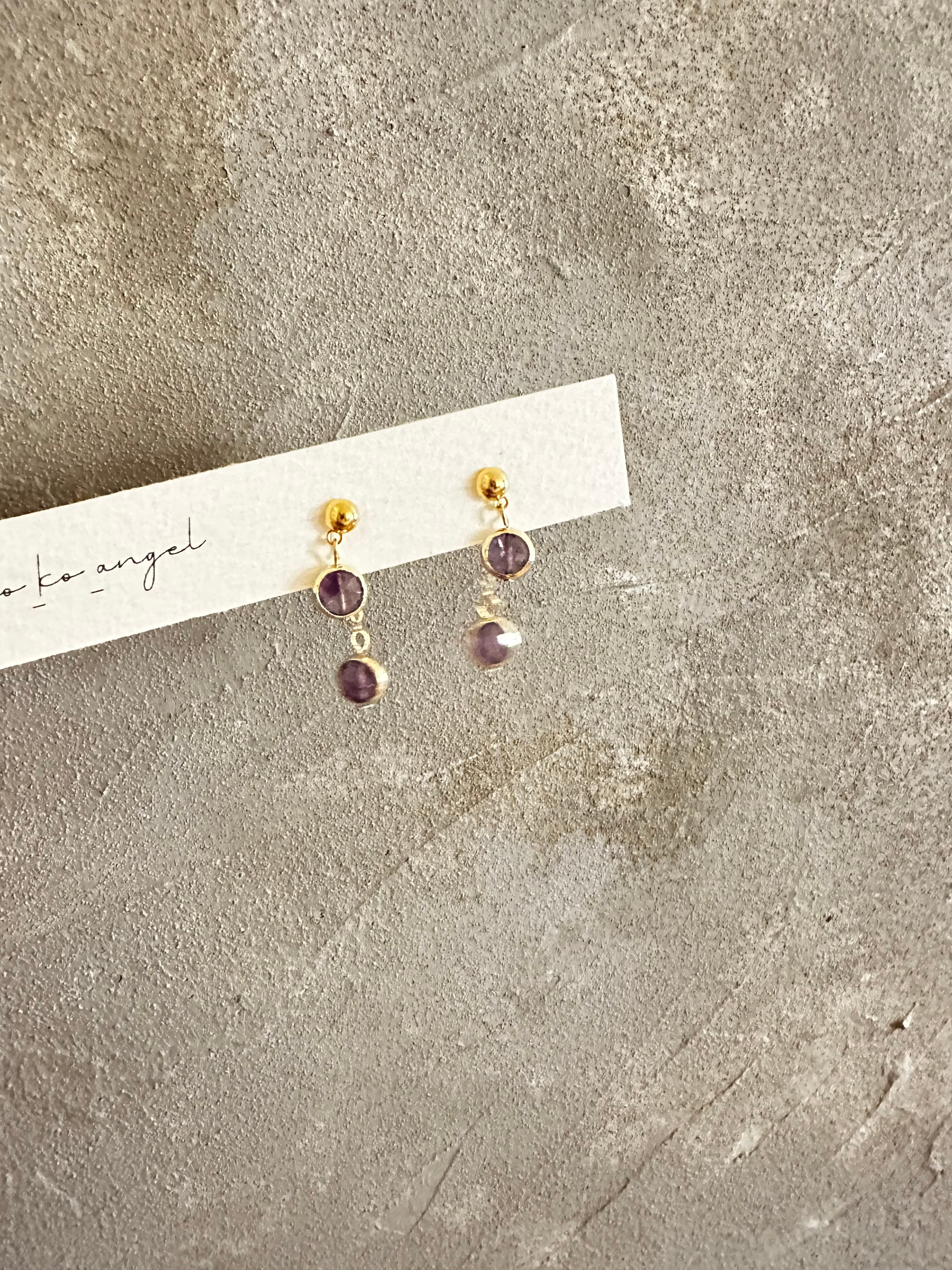 サージカルステンレスピアス|アメジスト 2wayピアス 樹脂キャッチ付き 紫色の神秘的な天然石 金属アレルギー対応