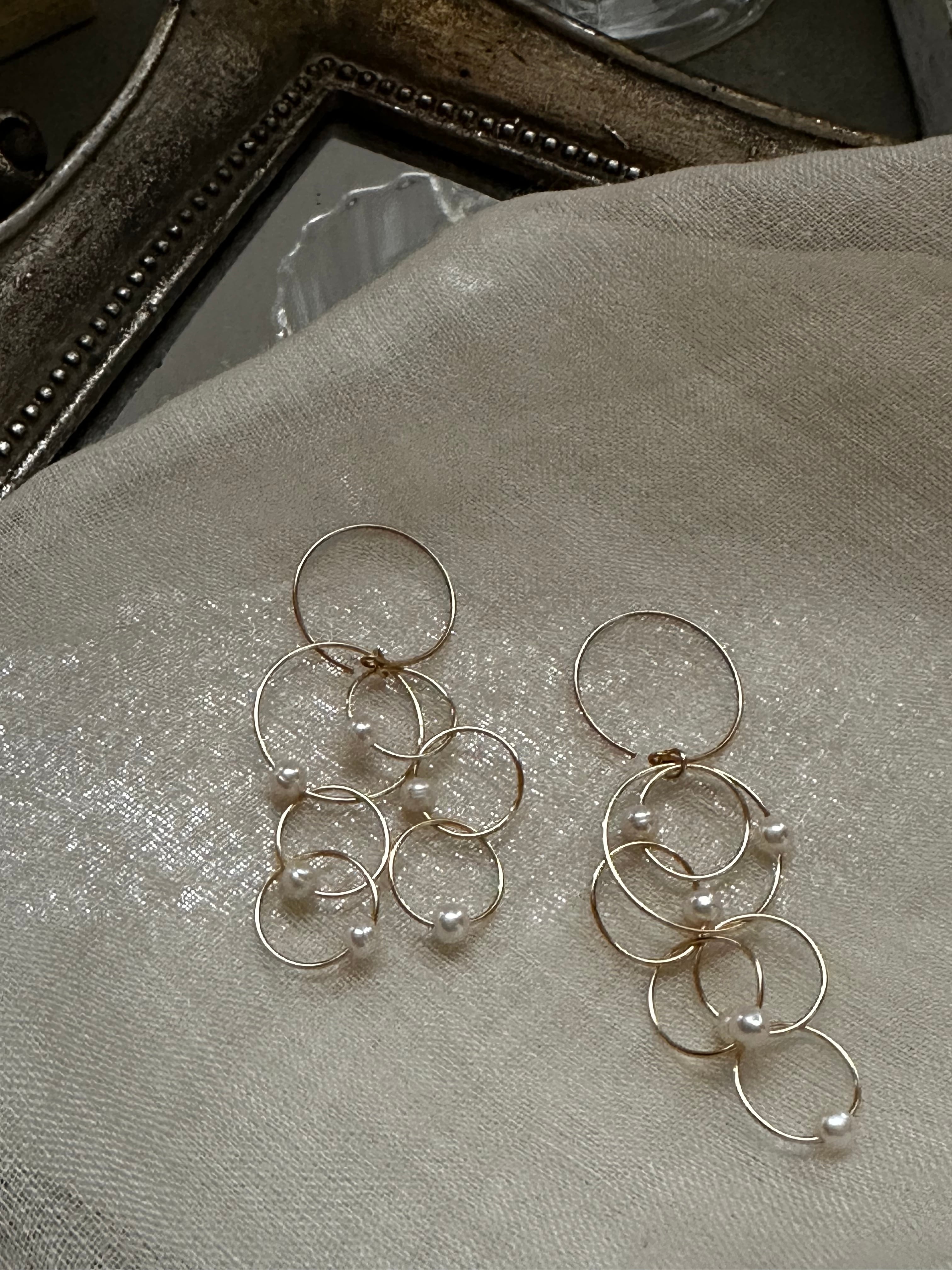 リングがふわりと揺れるたびに光を受けてきらめき