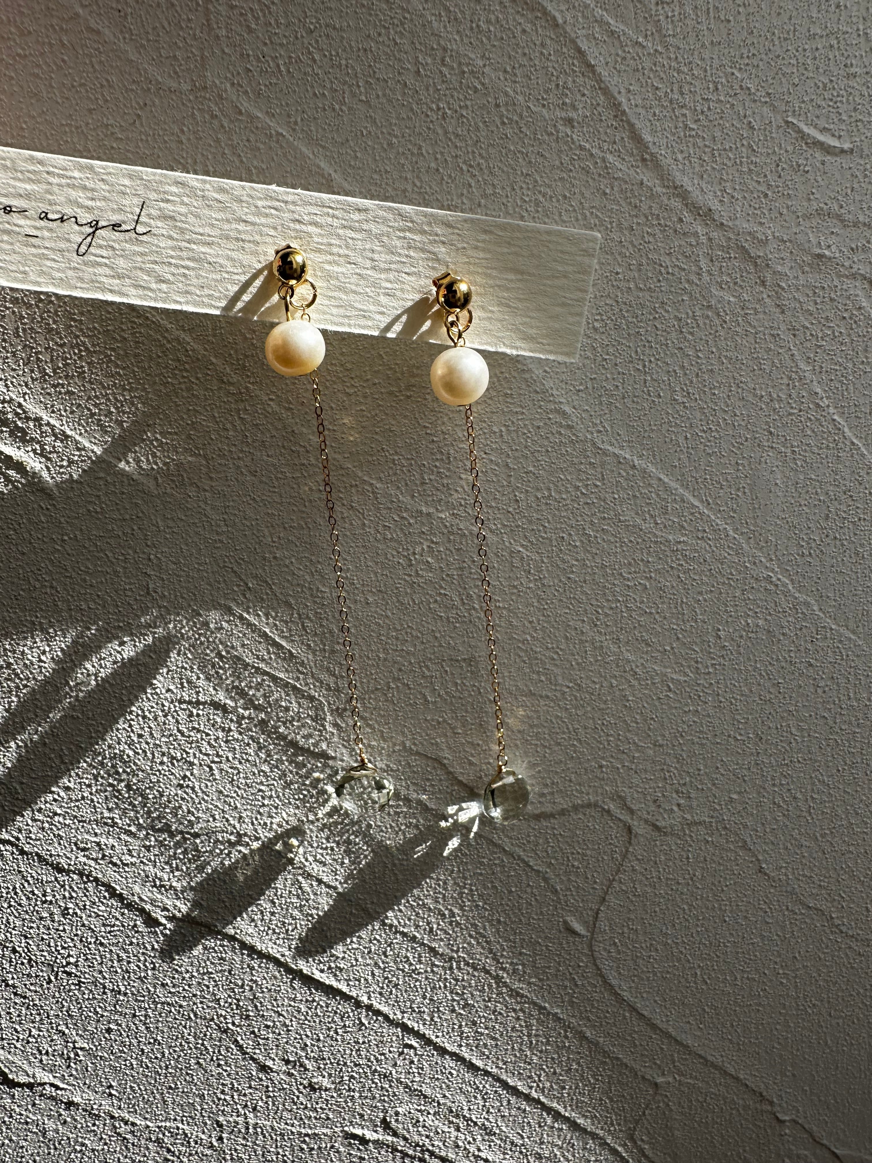 淡水パールとグリーンアメジストの2WAYサージカルステンレスピアス 金属アレルギー対応