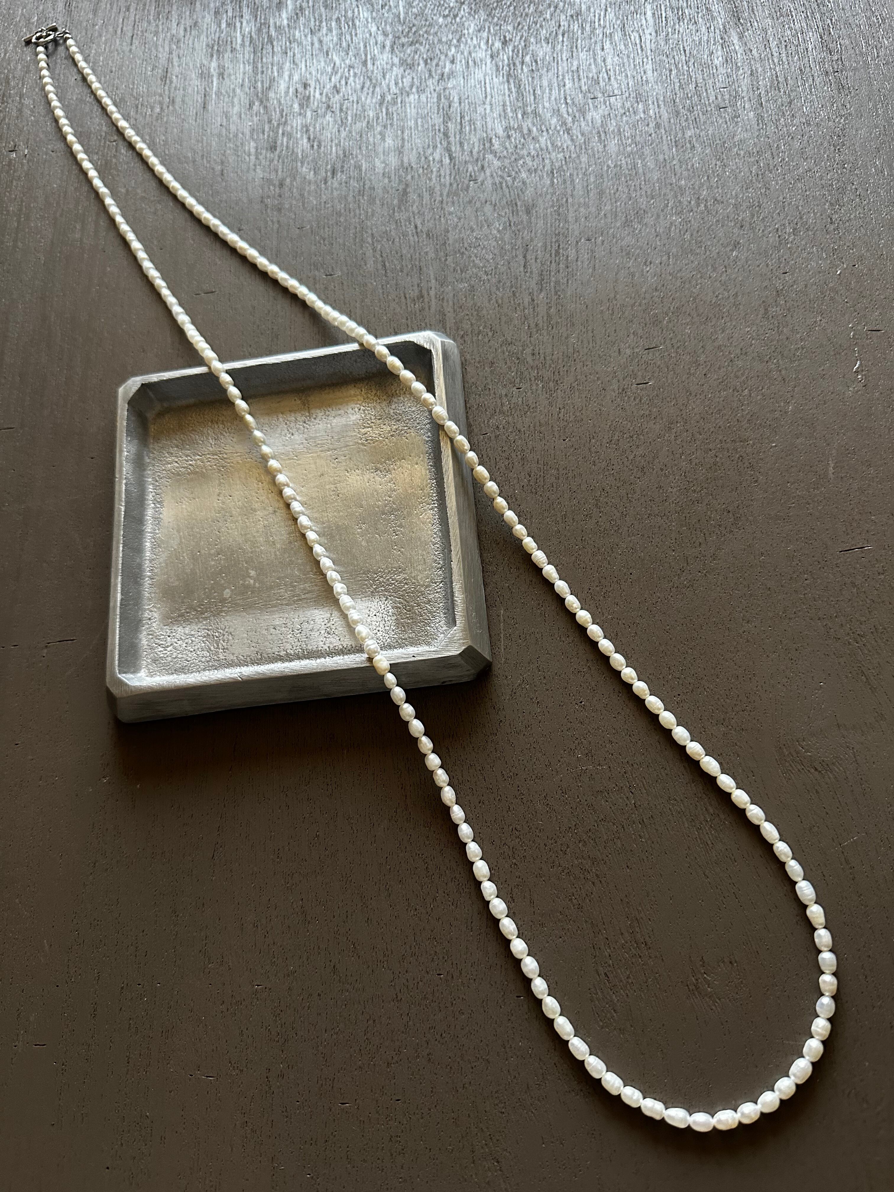ラウンドではなく、ライス形の淡水パールだからこそ、かしこまらず、カジュアルな場面でもお使いいただけます