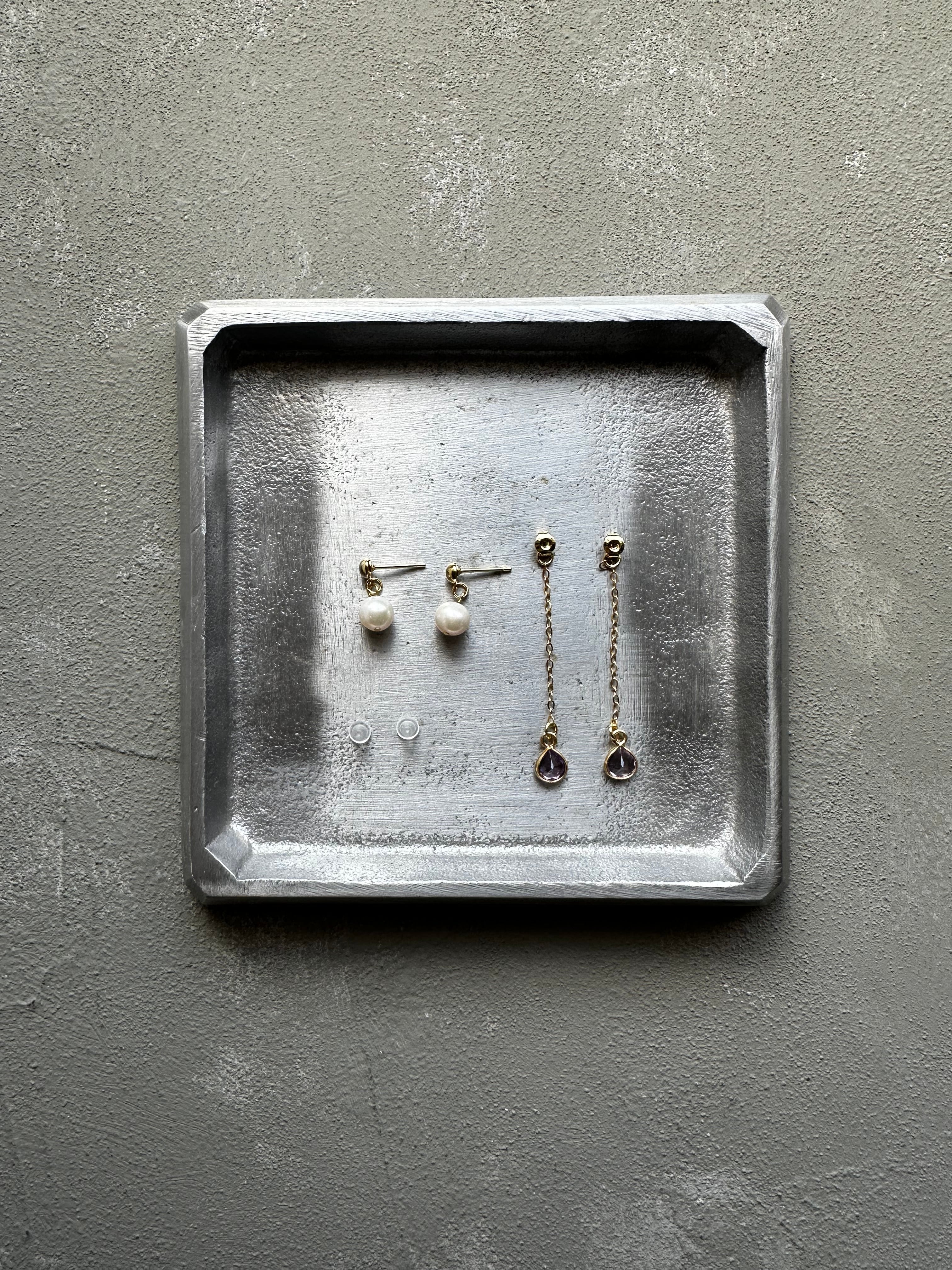 透明紫のアメジストと淡水パールの 2wayサージカルステンレスピアス 金属アレルギー対応