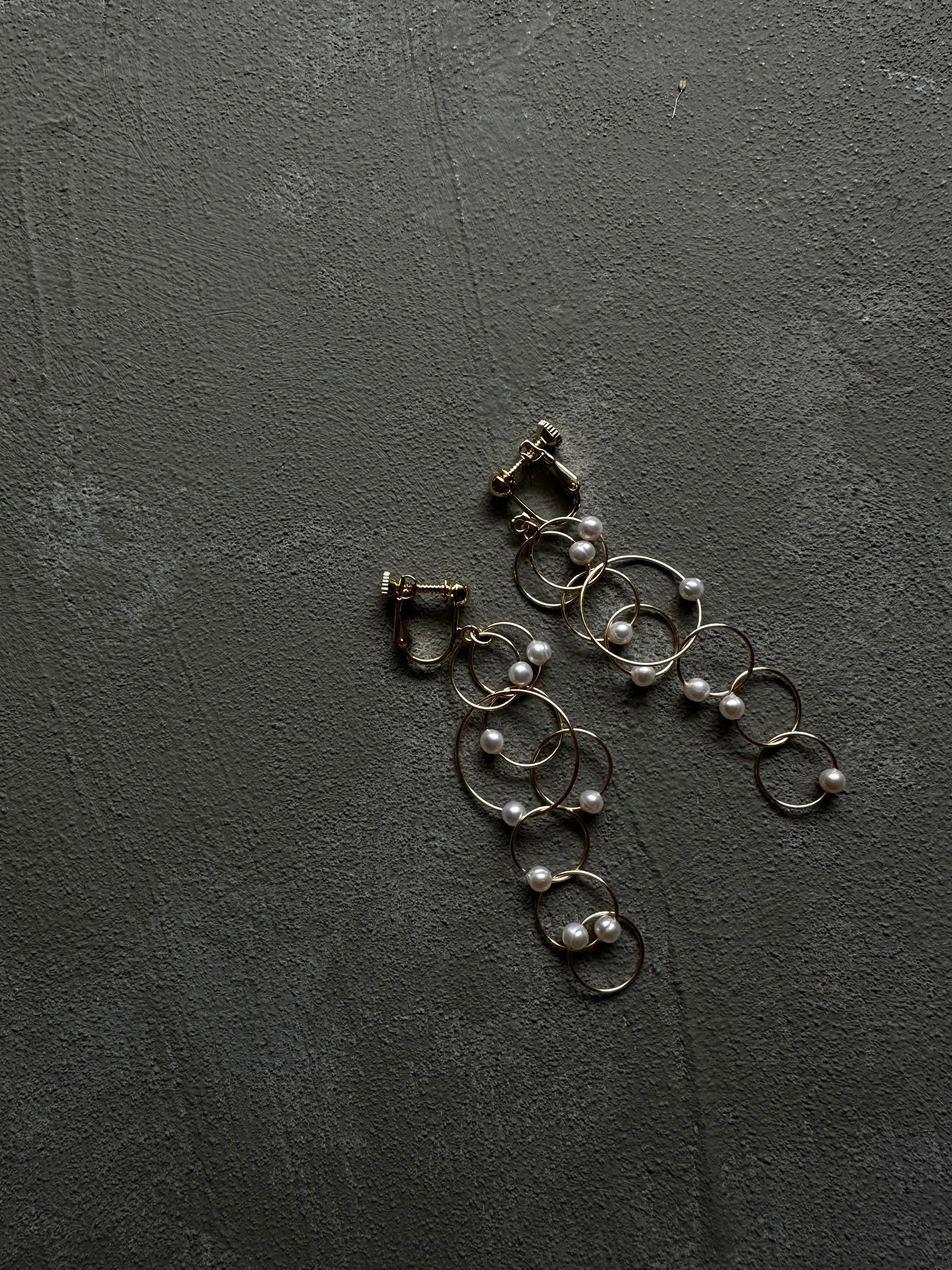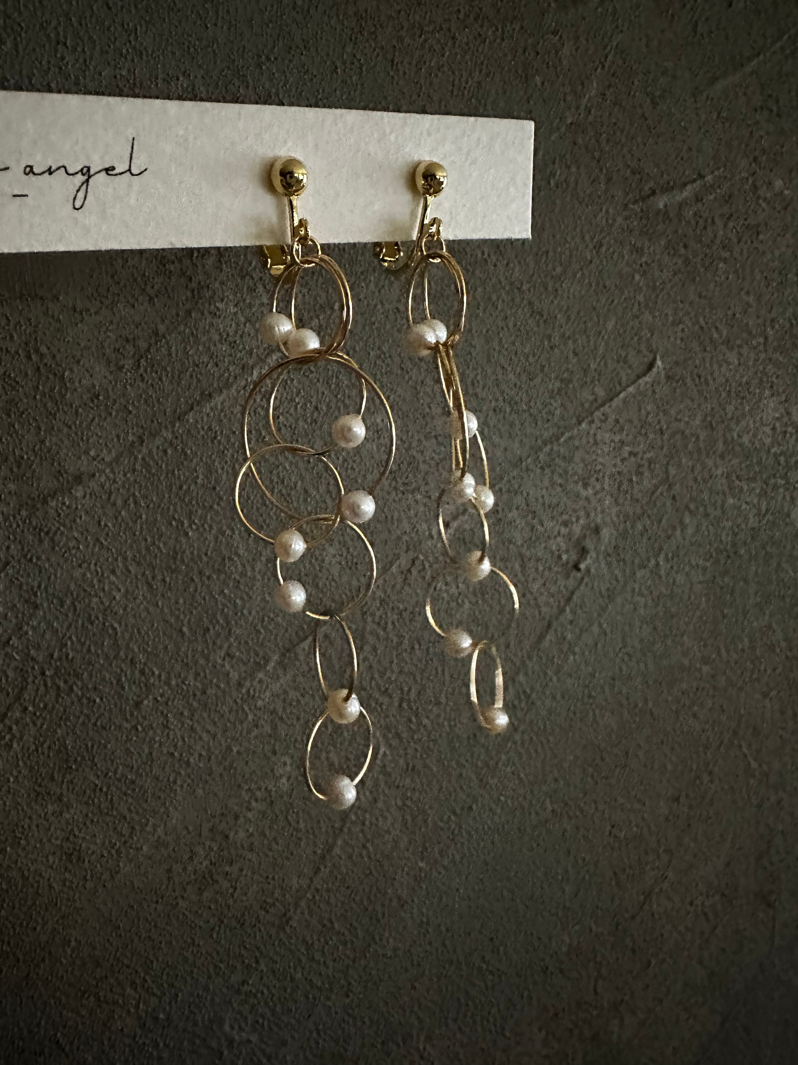 淡水パールの重なりロングイヤリング ― /ほどよいボリュームの大人アクセ/金属アレルギー対応