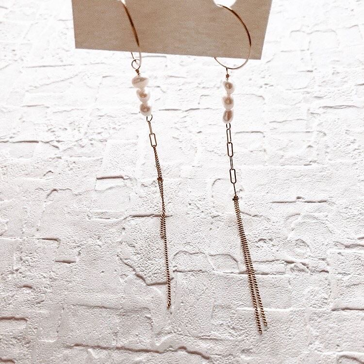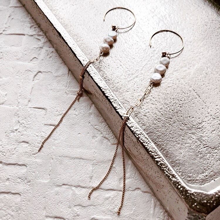 不揃いな小粒淡水パールを使ったCフックのピアスです。