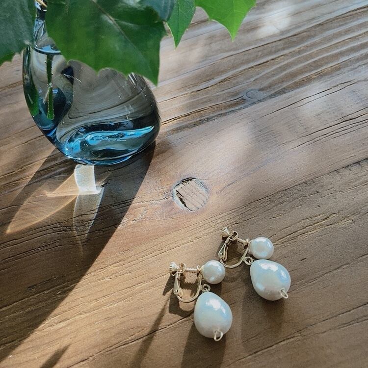 チャームが外せるドロップ型コットンパールの大人イヤリング