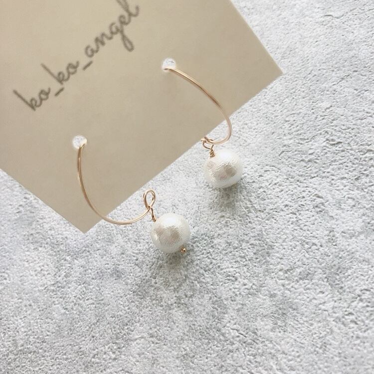 コットンパールのシンプルピアス 8mm 14kgfフック 金属アレルギー対応