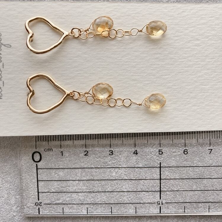 シトリンのハートピアス 14kgf 金属アレルギー対応ピアス