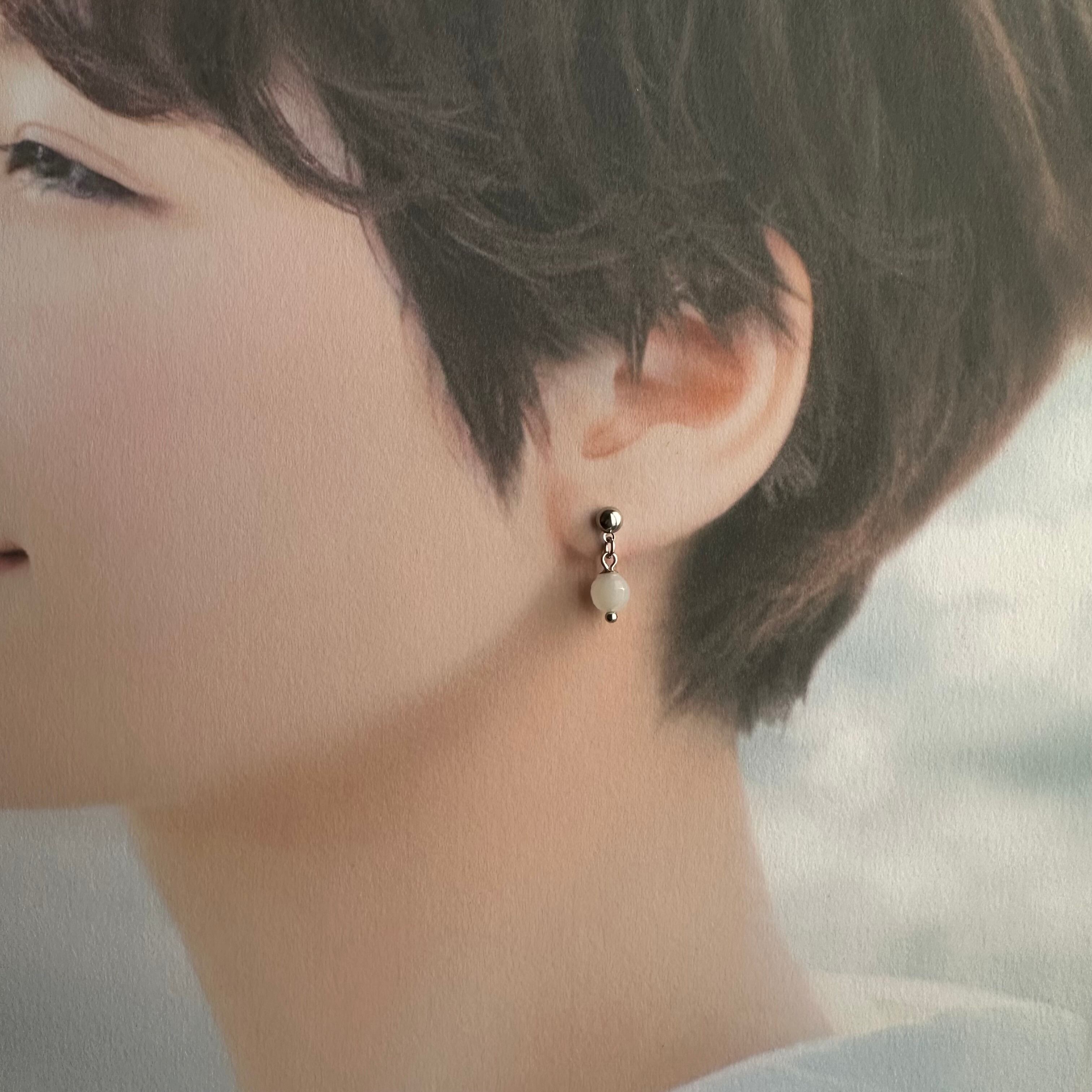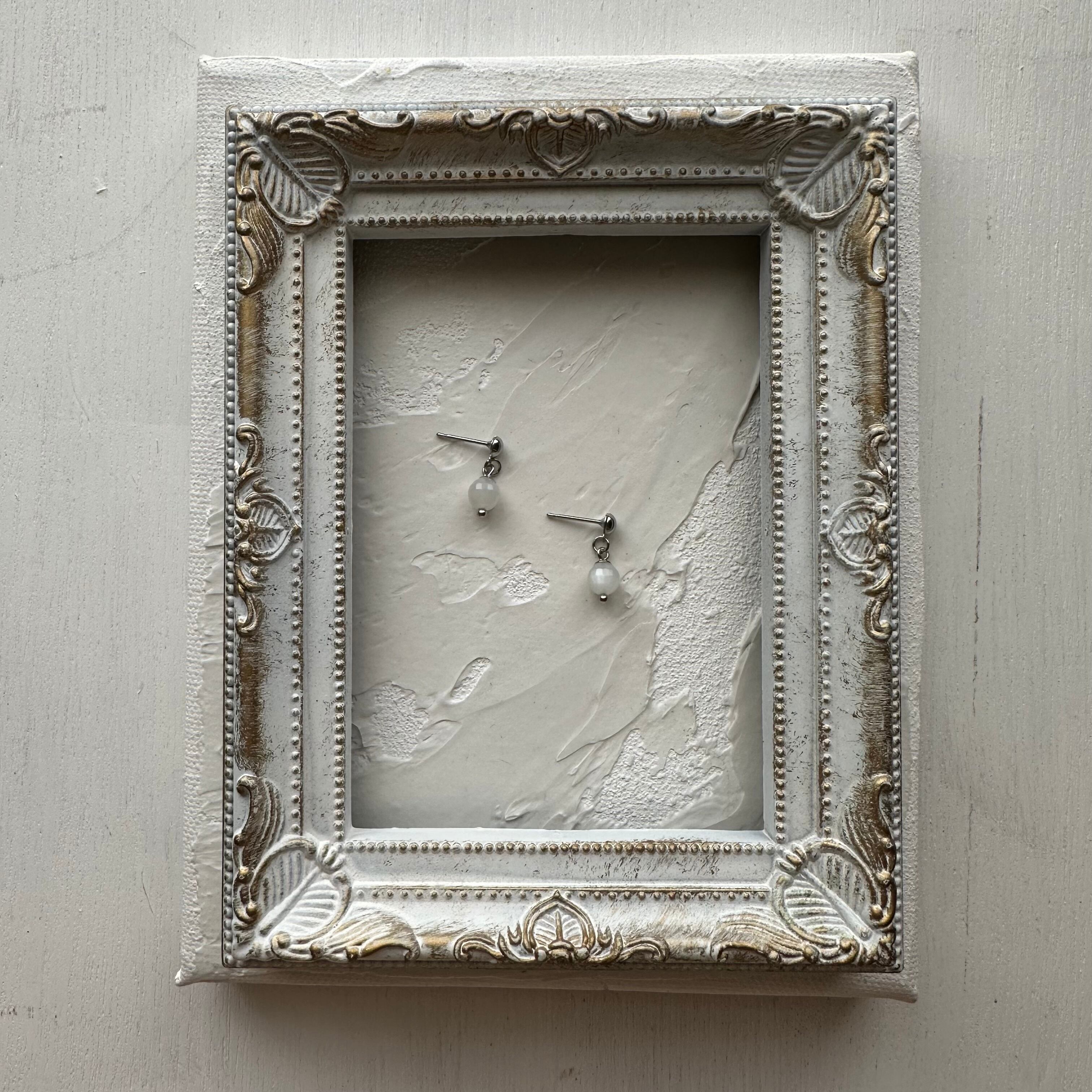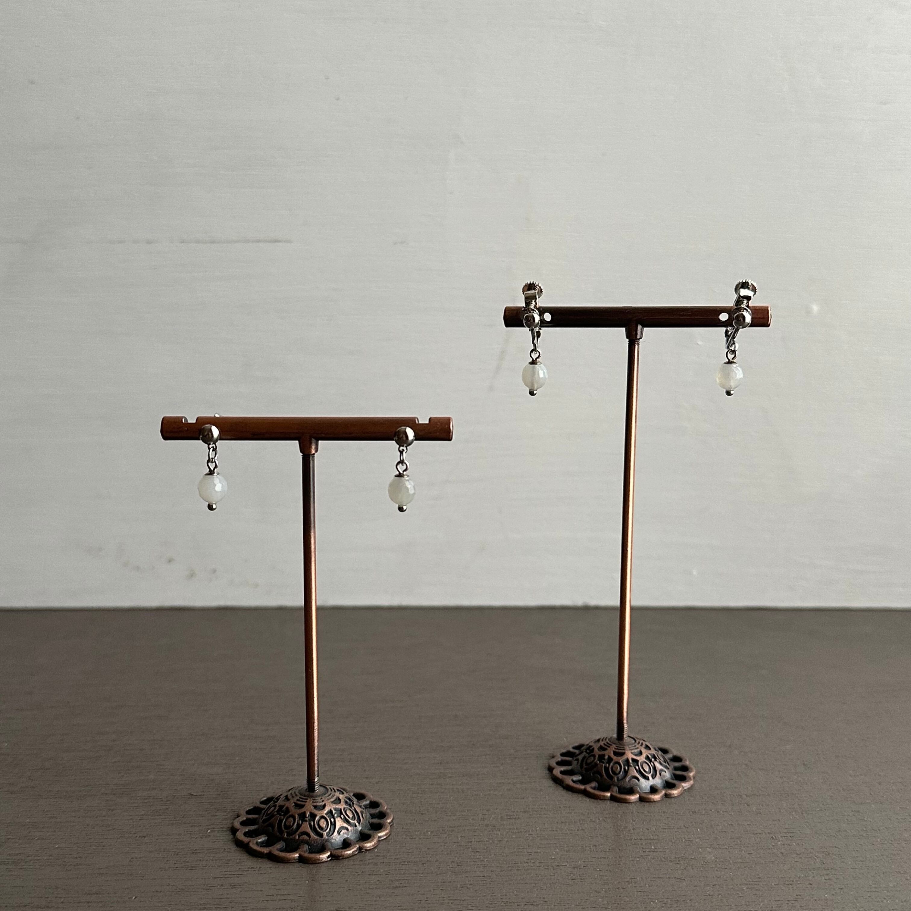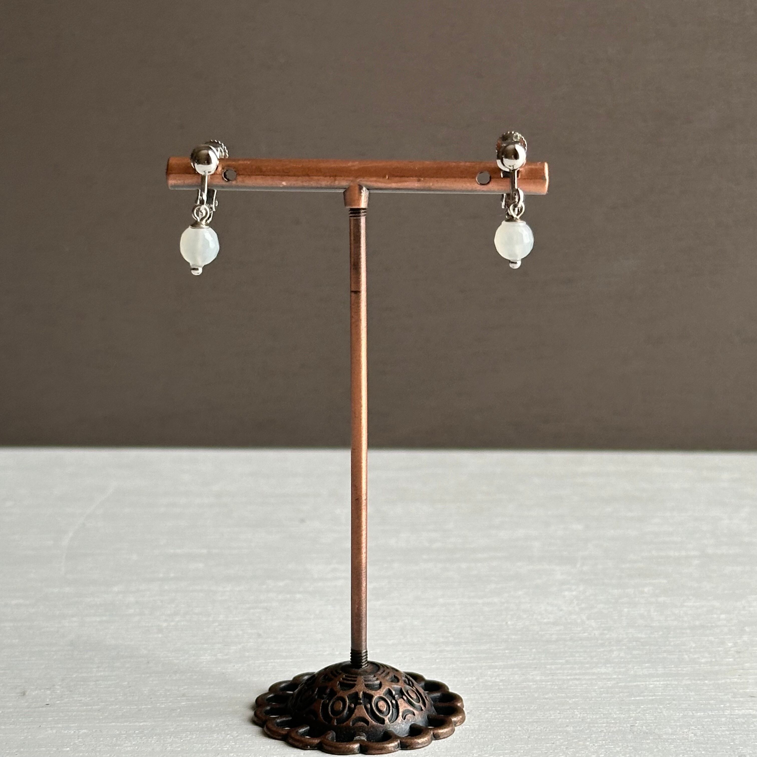 小粒のホワイトムーンストーンが柔らかな輝きを放つ職場でも気軽に着けられるピアスとイヤリング