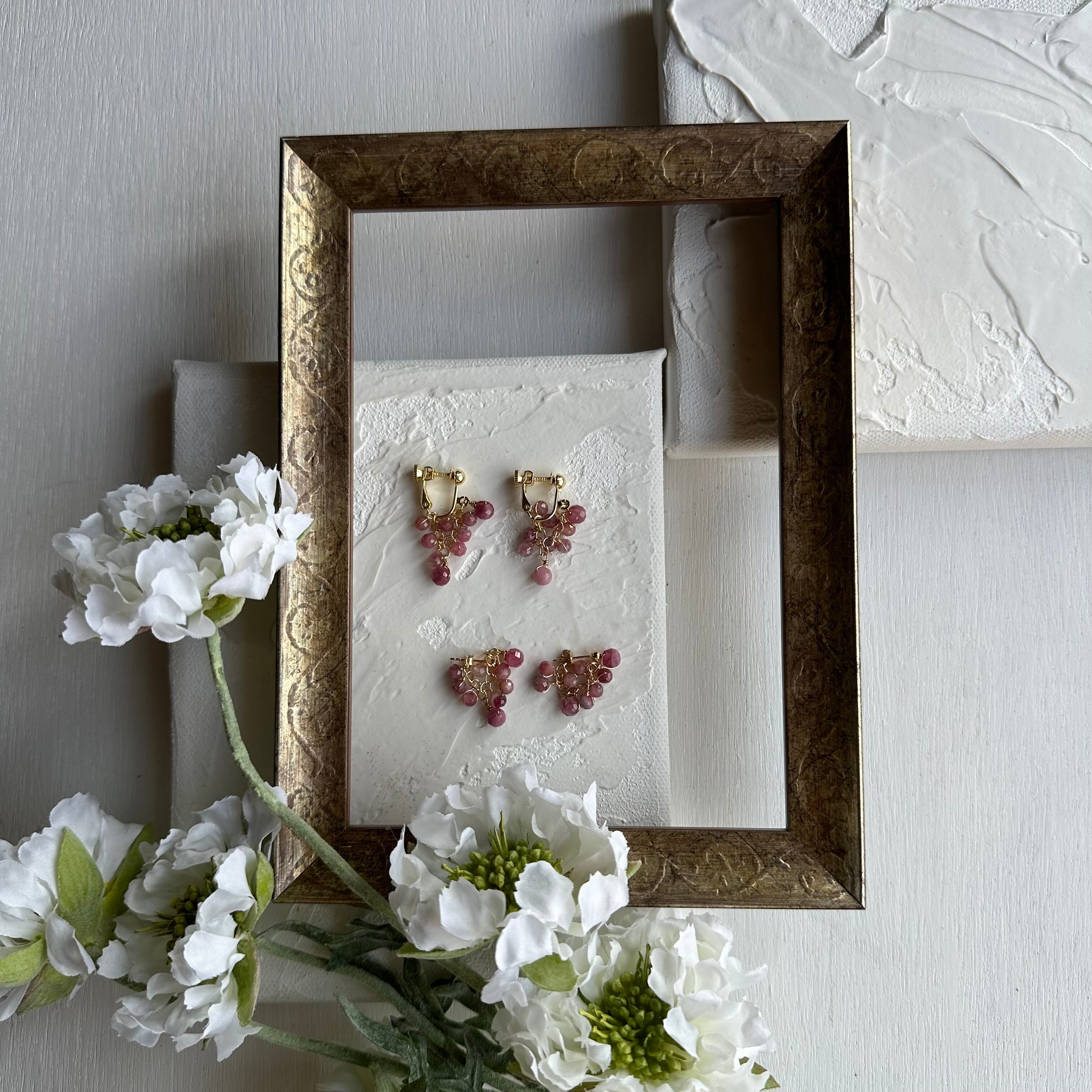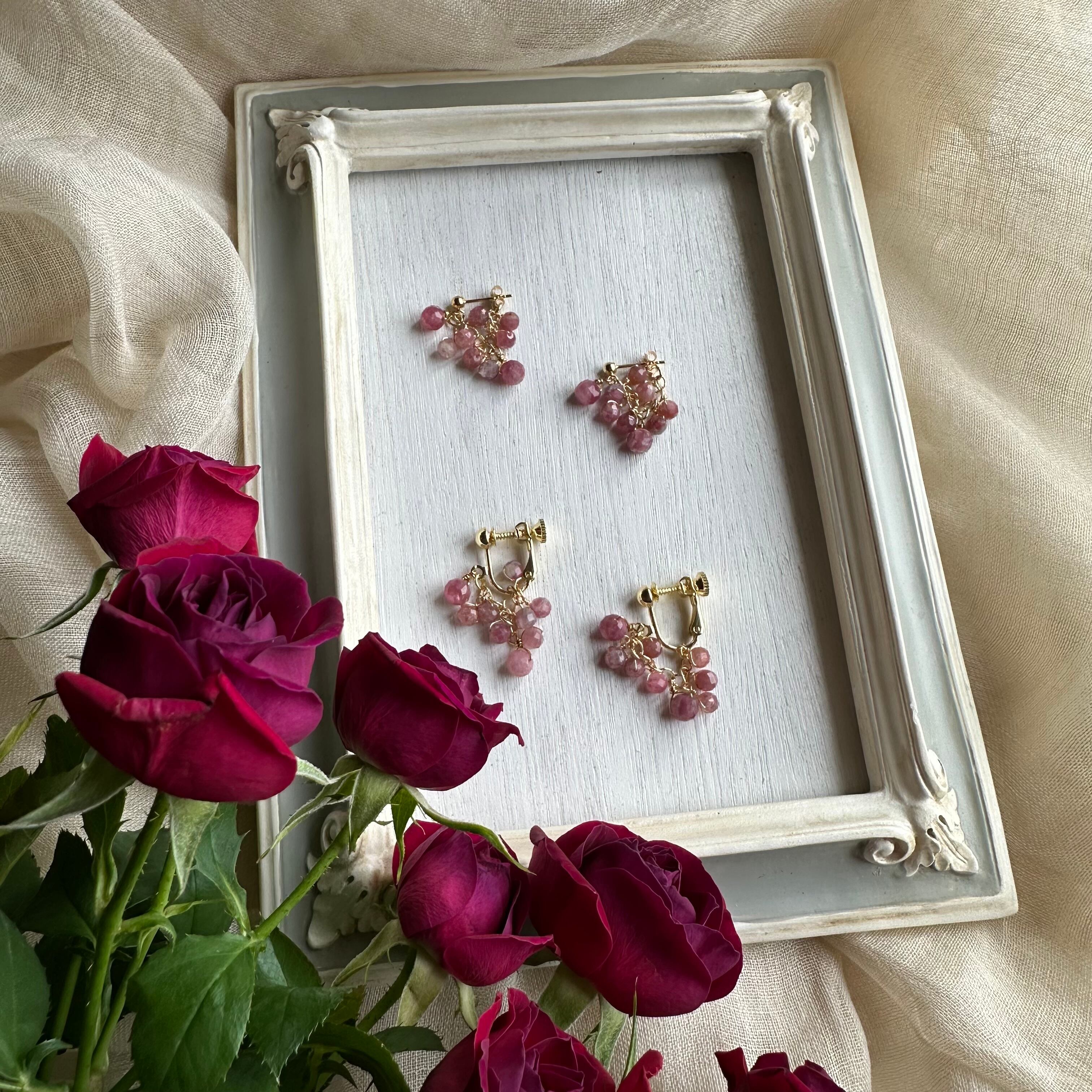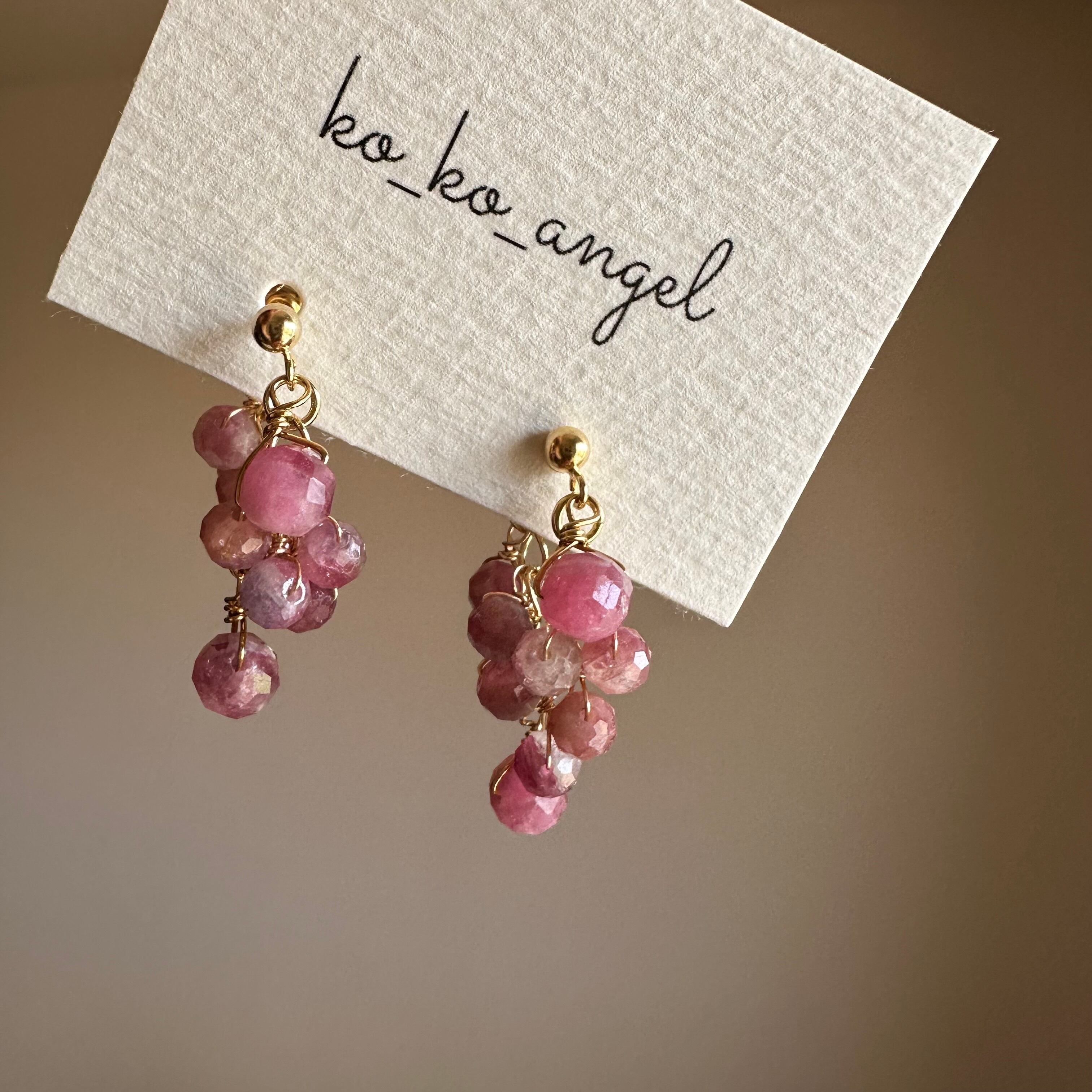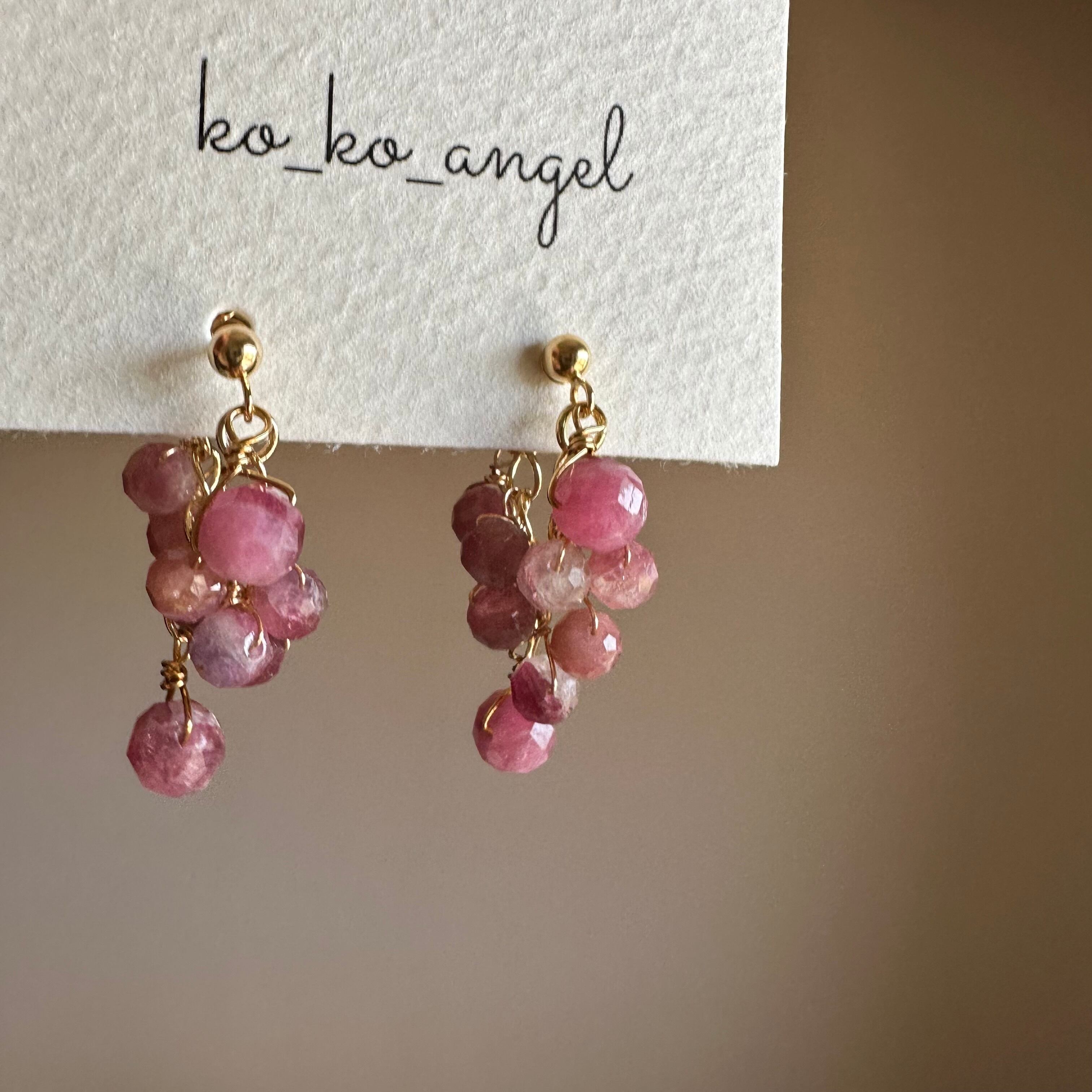 大小大きさの異なるピンクトルマリンを使用しているので動きのあるデザインとなっています