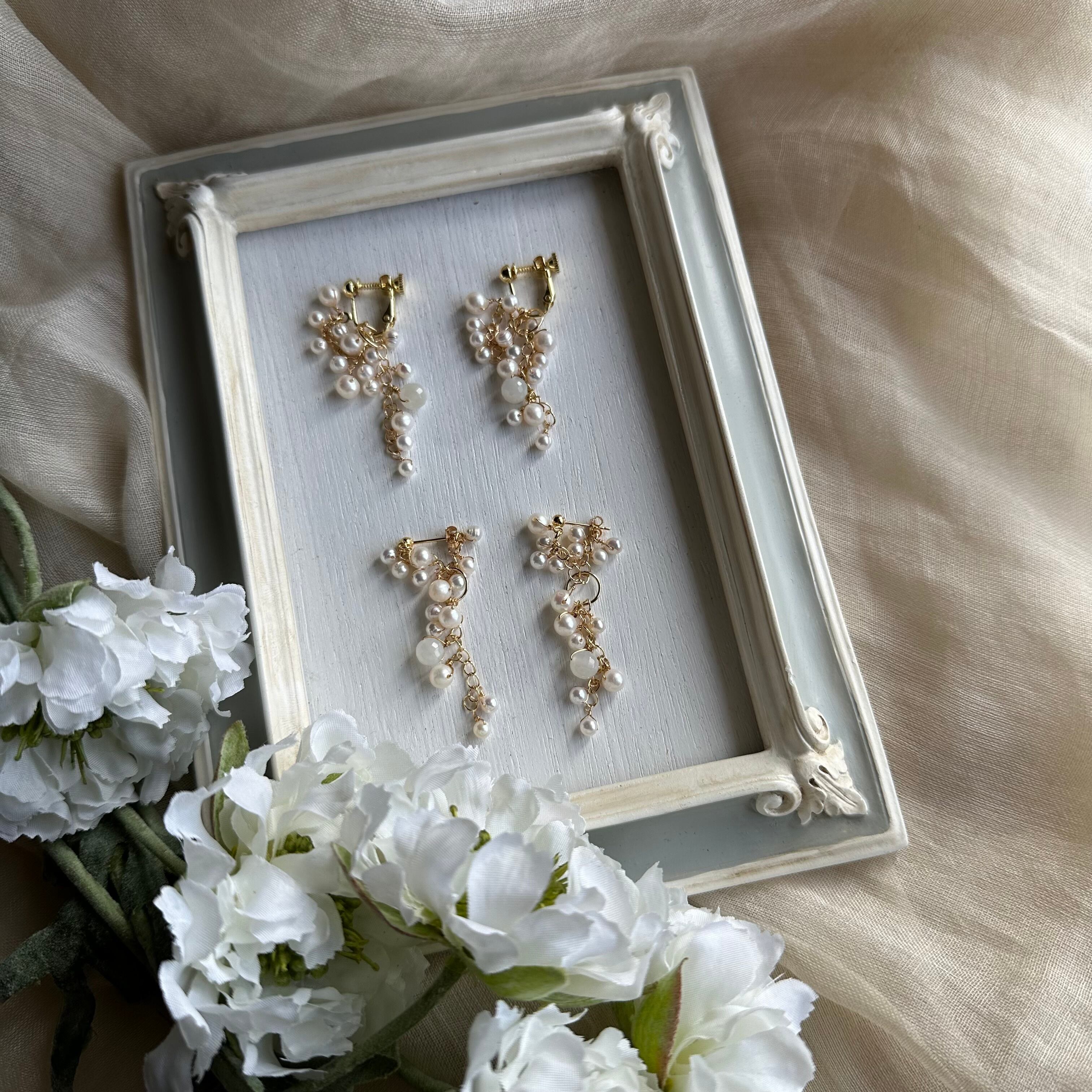 耳元で淡水パールがさりげなく揺れ